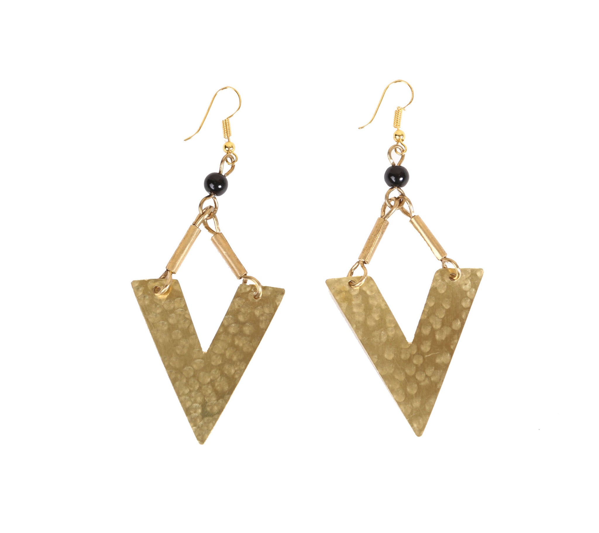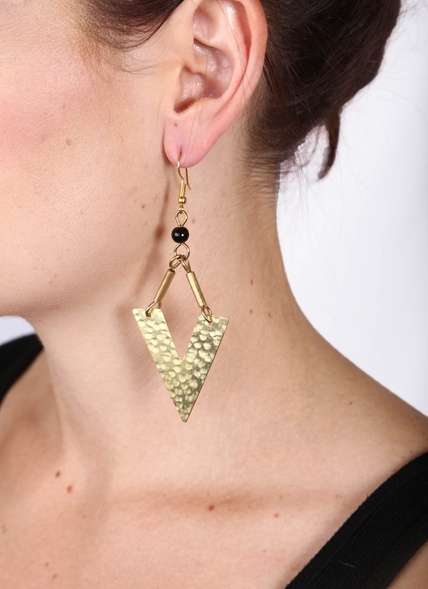 A modern must have earring that will elevate your day or night look. These brass earrings are hand-cut to create their unique shape and lightly hammered to give them texture.