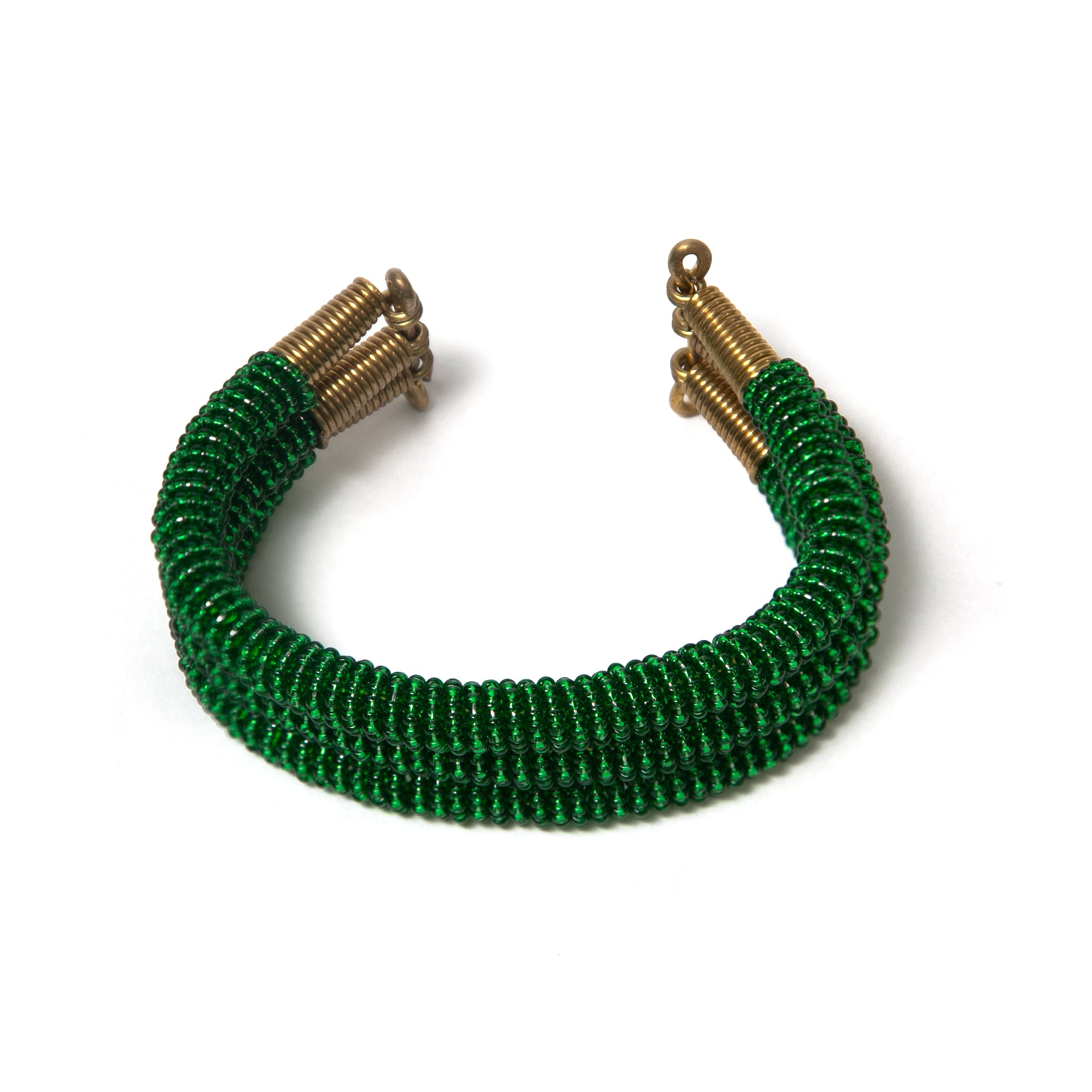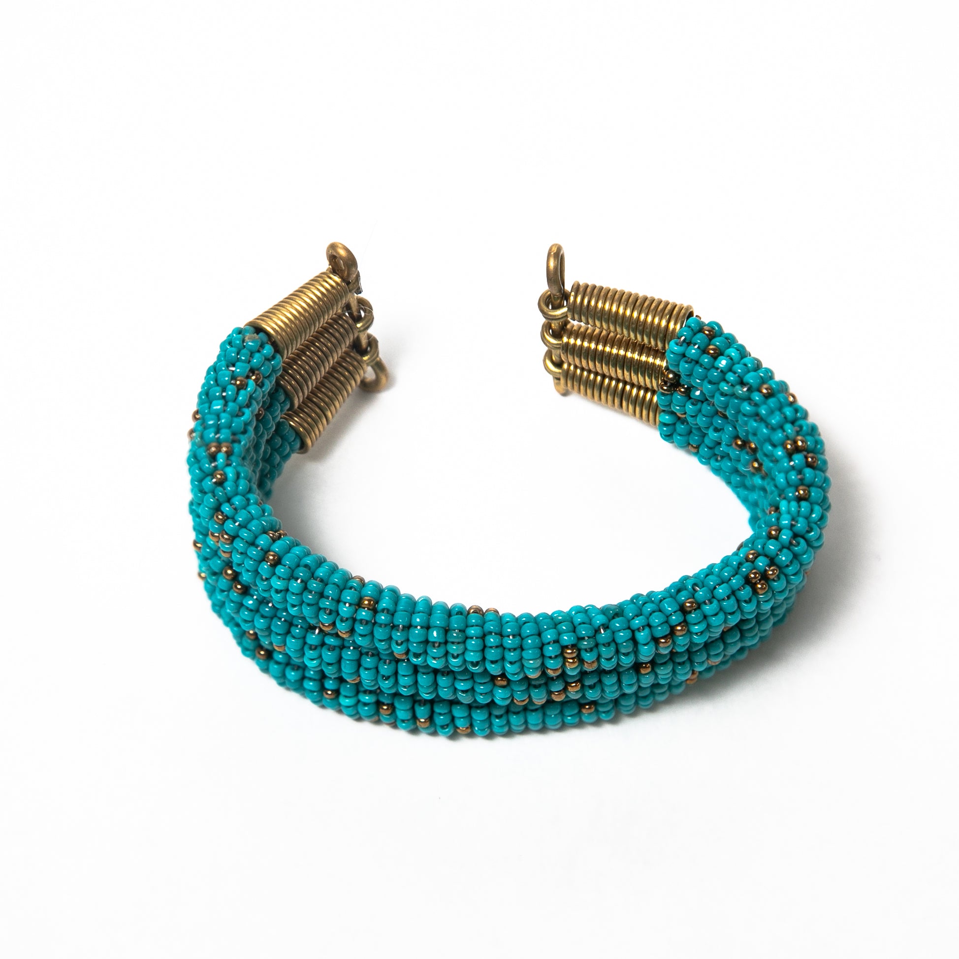 A unique bracelet with astonishing detail handcrafted with the same meticulous attention to detail as the Soraya necklace. Each glass bead is carefully threaded to create a beautiful interplay of colors and textures. This elegant bracelet perfectly complements the choker, allowing you to create a stunning, coordinated look