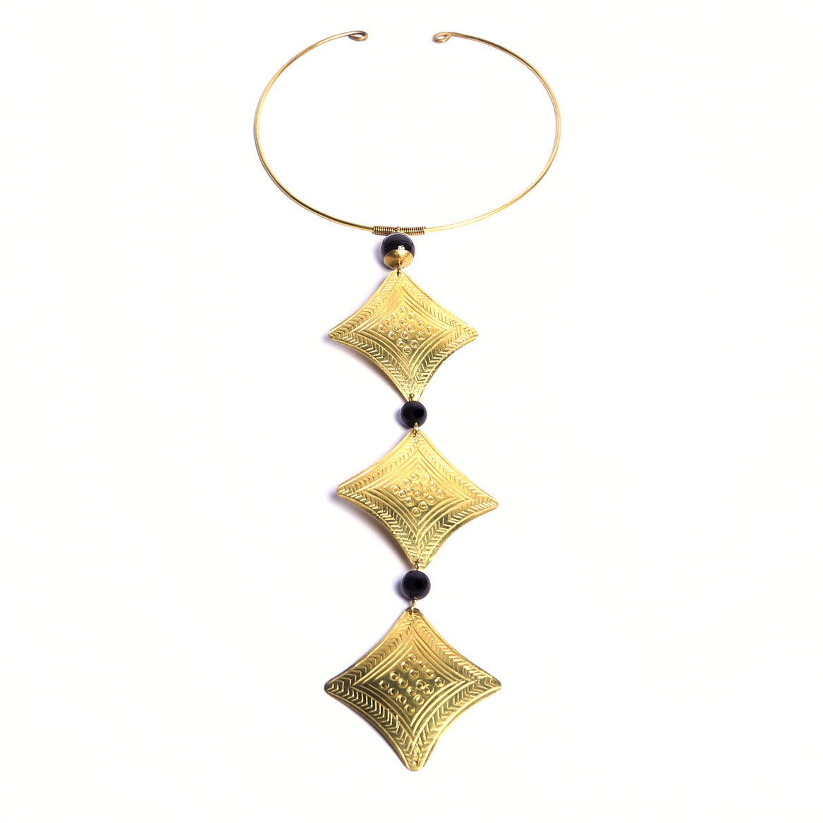 This tiered brass necklace is a must-have piece for your everyday wardrobe. The bold style of the necklace is sure to turn heads, and the intricate tribal markings on each pendant make it a unique addition to your collection. It is also surprisingly versatile, lending a boho-chic look to any outfit. Whether you're dressing up for a night out or keeping it casual, this necklace is a perfect addition to your wardrobe.