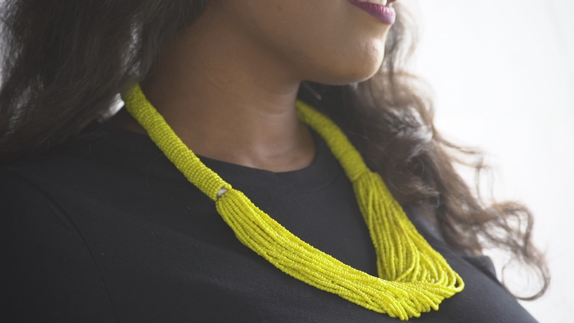 Looking for a little bit of color in your life? The Kari beaded necklace is just the thing. This handmade necklace is made with locally sourced beads, so you can be sure that you're getting a high-quality product. The bright colors on this necklace are sure to add a touch of personality to any outfit. Whether you're dressing up for a special occasion or just want to feel a little more stylish everyday, this necklace is perfect for you.