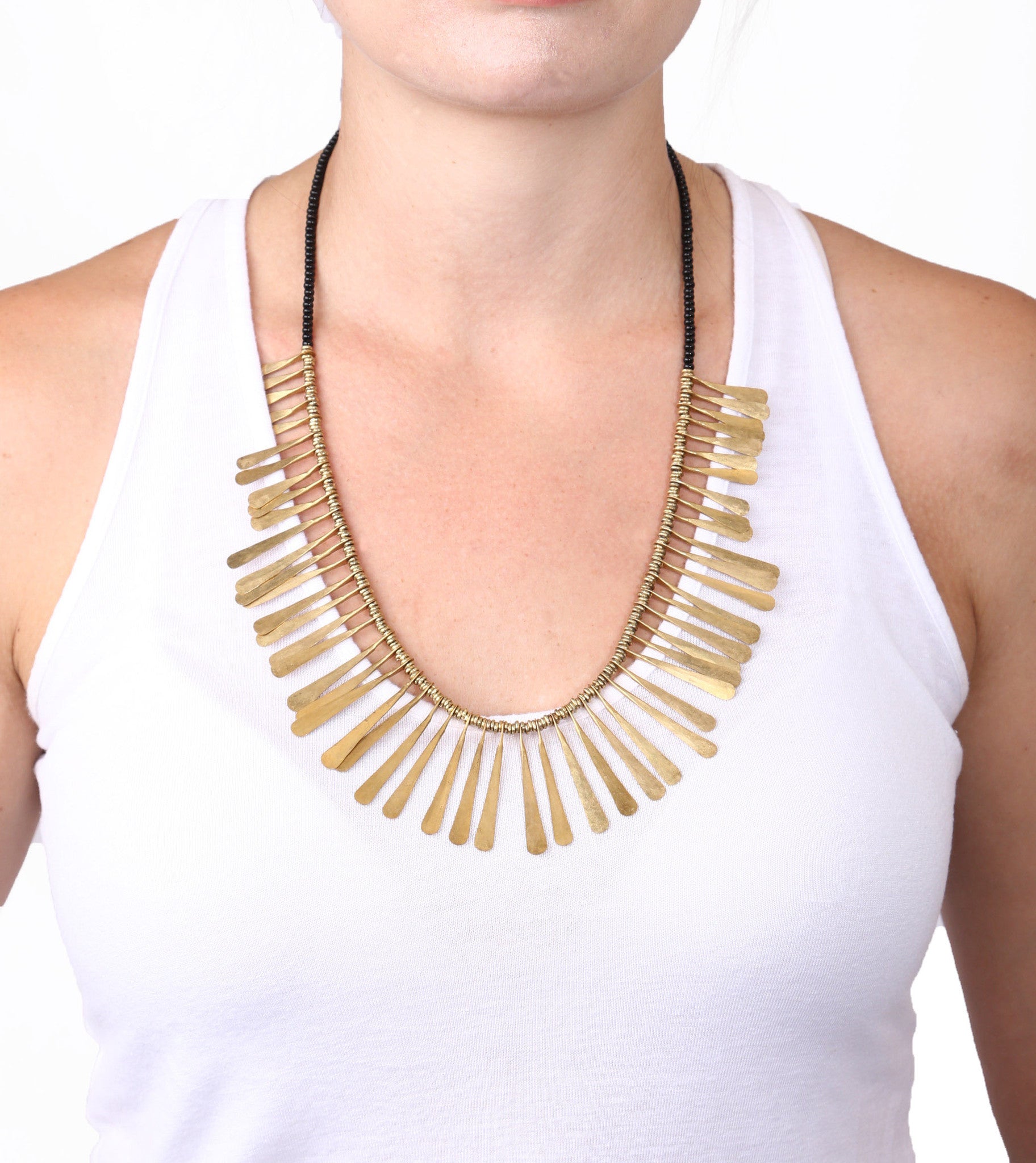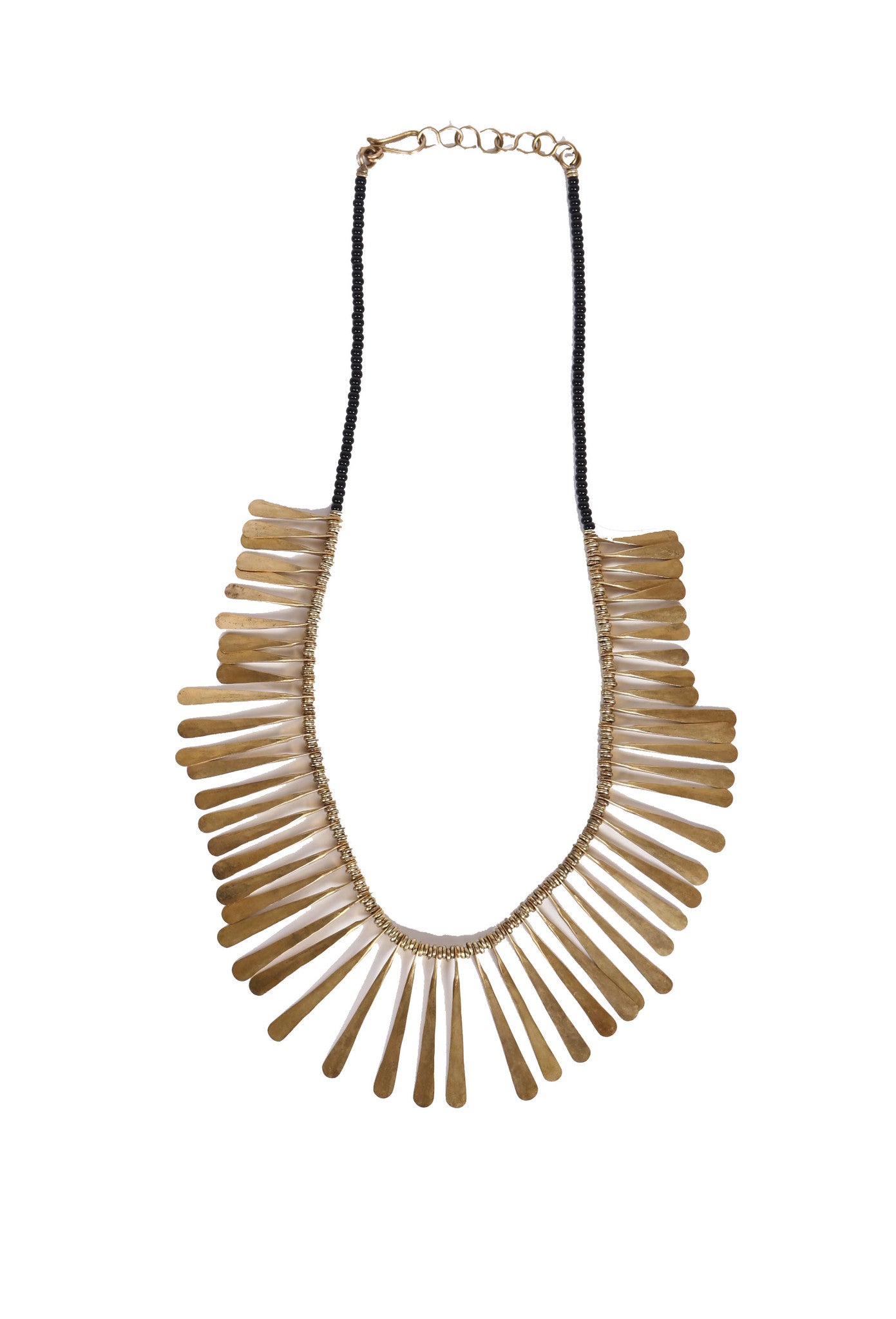 Boast your style and charm with this captivating brass necklace. The unique design will transform any of this season's looks. Wear it with black jeans, a camisole and a leather jacket for a cool and edgy look.