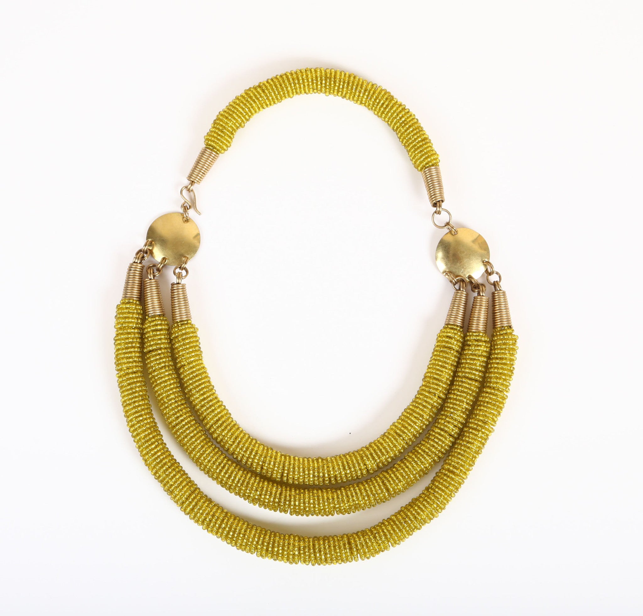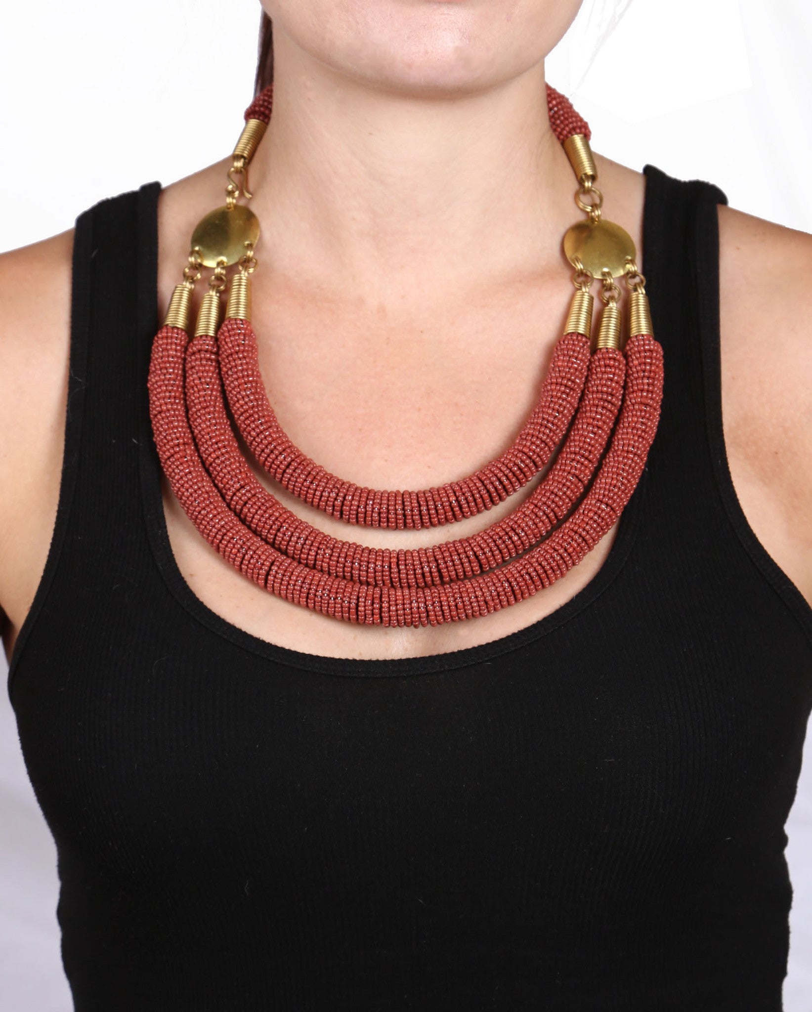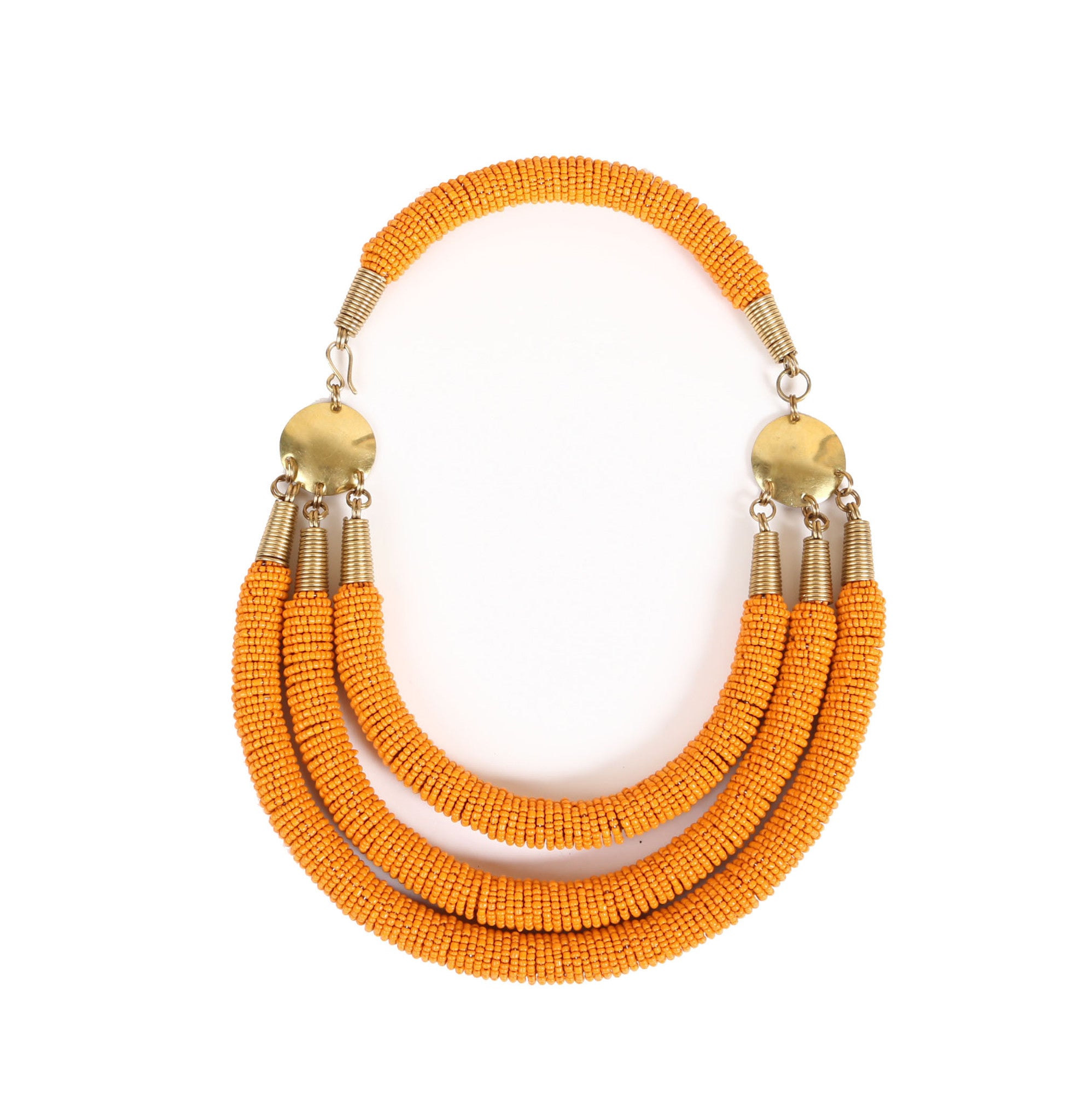 Go bold with the Shani Necklace - make heads turn with its captivating glass bead and brass design! Show off your unique style with this must-have statement piece, perfect for any season. Adventure awaits!