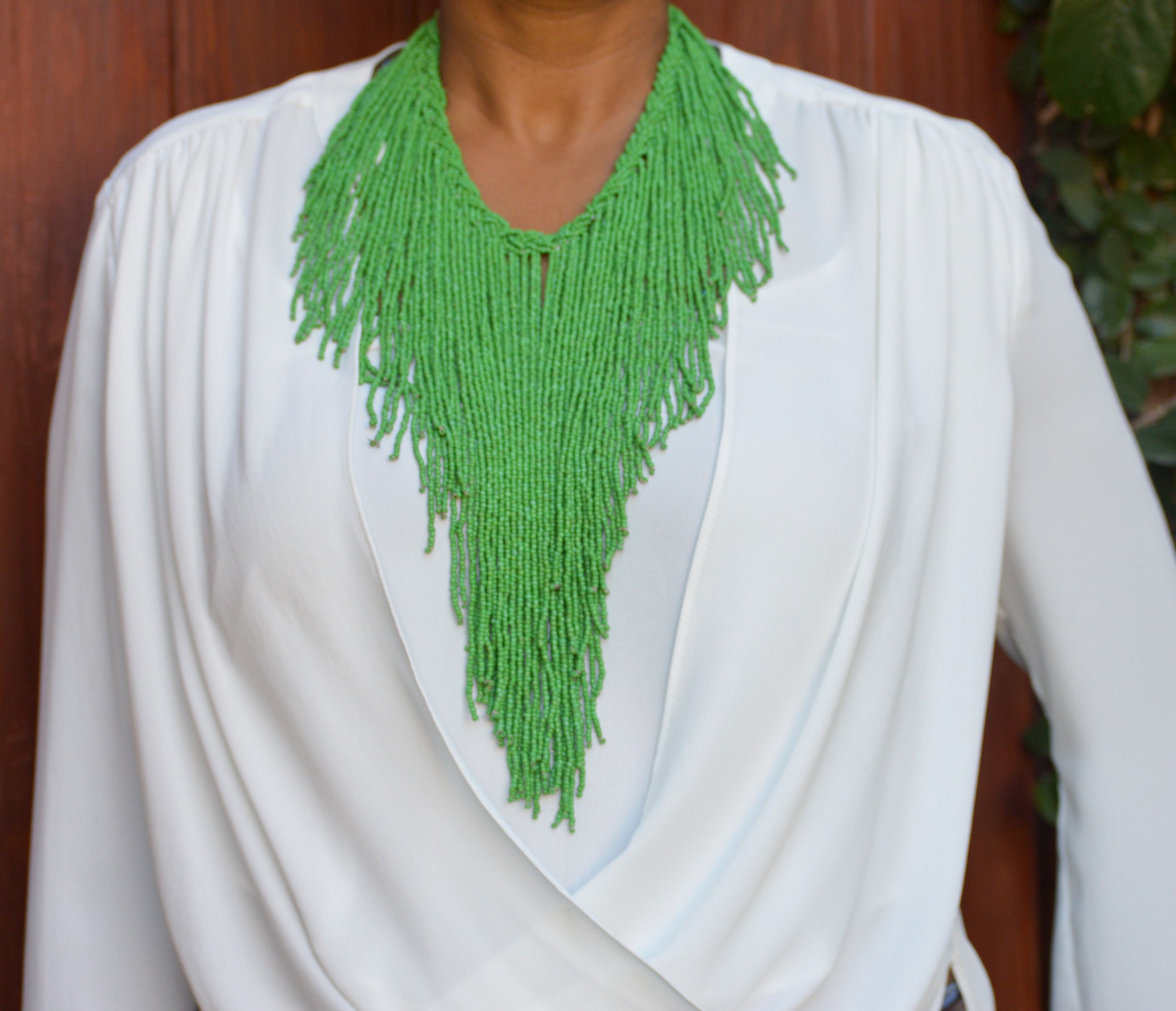 Explore the world, making a fashion statement all the way with our gorgeous Wema necklace. This style-defining piece is expertly handcrafted, each bead precisely placed to create a stunning cascading effect. With a delicate thread of braided beads connecting them all together, this necklace adds an extra layer of sophistication and grace to any outfit. Take it traveling and enjoy endless compliments wherever you go!