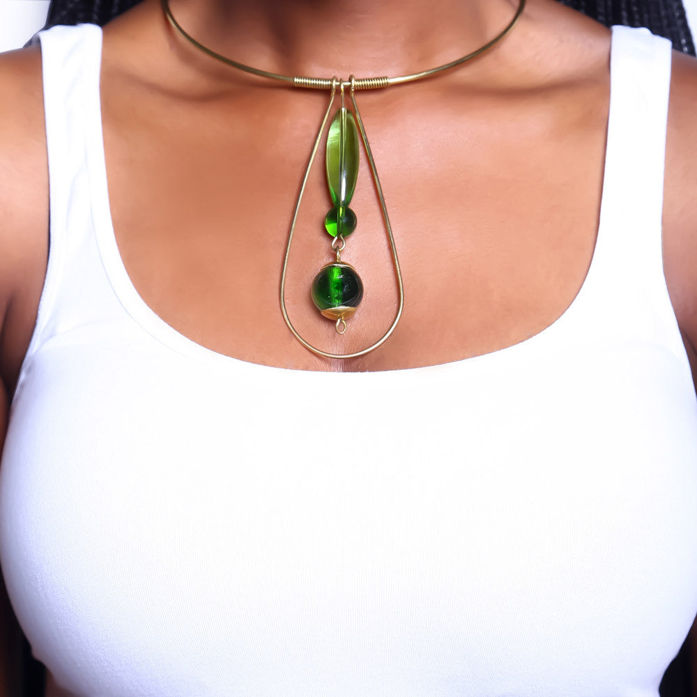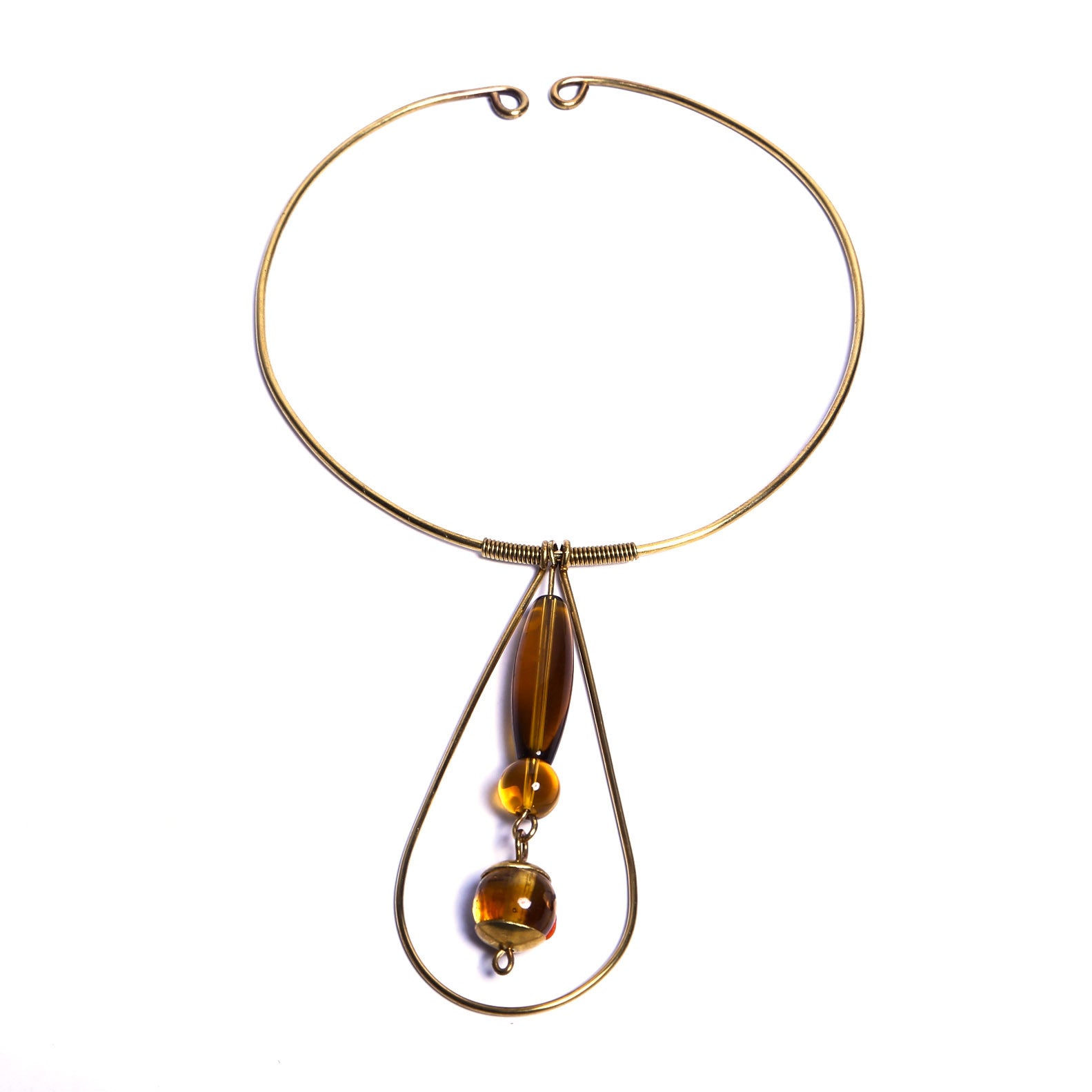 A beautiful and versatile piece that will take you from the office to an after work mixer effortlessly. Made out of brass this choker style necklace is easy to slip on and off and the delicate recycled glass centerpiece will certainly make a statement.